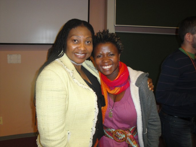 Ugandan delegate Prudence Nyamishana with South African singer Yvonne Chaka Chaka. A Rosebell Kagumire photo